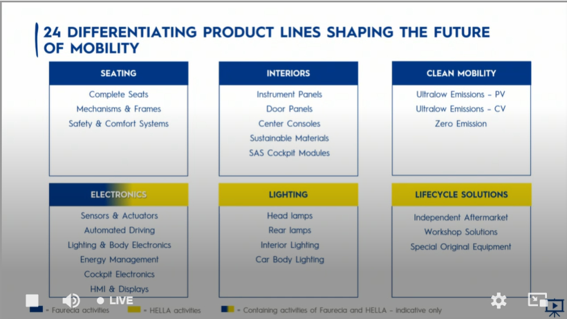 FORVIA的24条产品线,图片来源:官方发布会截图